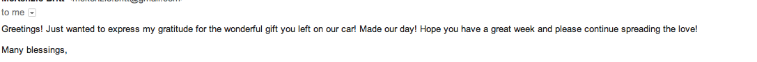 Mark apologized on his behalf told me he met the guy at church (it’s one of his roommates)…it’s amazing to me who people turn into when they’re driving.  I try not to pass judgement but I’m pretty disappointed that this church-goer was so rude.